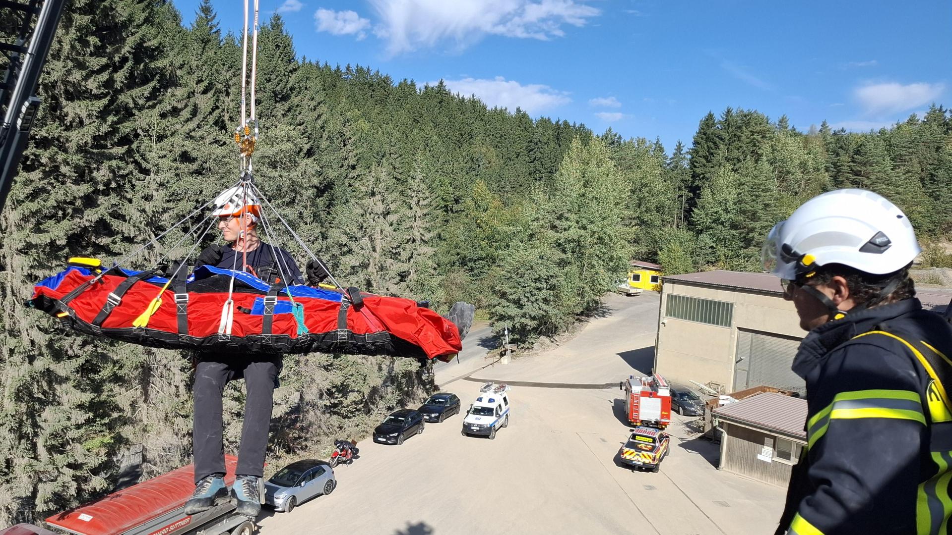 Feuerwehr und Bergwacht üben beim Steinbruch Böhmischbruck